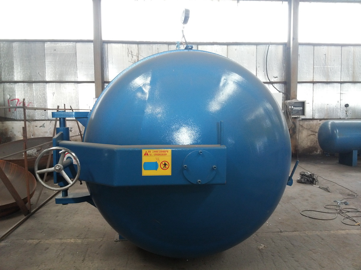 主要工作原理:采用幾組特制的不銹鋼散熱管分布在罐壁控制加熱。蒸汽由罐后2組自動閥門進入到罐內的散熱片中,散熱管按規則排列在罐體的上下左右方,高溫風機通過溫度循環板將熱量由后至前均勻分散,熱量推進至罐門后返回風機導流罩處,循環風道促使罐內熱量更均勻的循環和擴散,優化熱循環和熱傳導效率,熱量在罐內來回循環,形成均勻的溫度場,溫度均勻無死角,壓力恒定。解決了罐內產品因溫度和壓力不均勻,而造成產品質量的差異,設定工作程序后,控制系統自動進行升溫、保溫、硫化等工作,硫化結束后自動斷電并發出聲光報警音提示。采用這兩種加熱方式,都需要額外配備鍋爐,產生蒸汽硫化。
