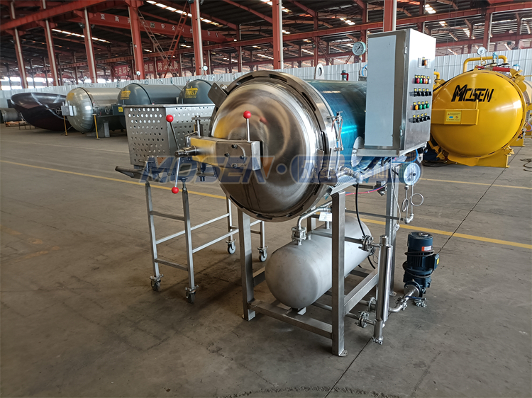 殺菌鍋設備主要用于肉制品、水果罐頭、奶制品、豆制品、農副產品、飲料制品、蛋制品、水產品、八寶粥、調味品、食用菌、寵物食品、湯和熟食以及果蔬等食品的殺菌。殺菌鍋由鍋體、鍋蓋、開啟裝置、鎖緊鍥塊、安全聯鎖裝置、軌道、殺菌盤、蒸汽噴管及若干管口、保溫層、熱水罐等組成。