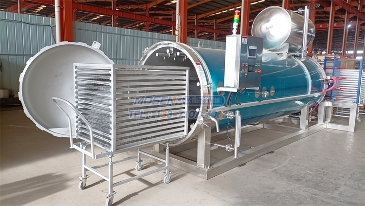殺菌鍋設(shè)備主要用于肉制品、水果罐頭、奶制品、豆制品、農(nóng)副產(chǎn)品、飲料制品、蛋制品、水產(chǎn)品、八寶粥、調(diào)味品、食用菌、寵物食品、湯和熟食以及果蔬等食品的殺菌。殺菌鍋由鍋體、鍋蓋、開啟裝置、鎖緊鍥塊、安全聯(lián)鎖裝置、軌道、殺菌盤、蒸汽噴管及若干管口、保溫層、熱水罐等組成。
